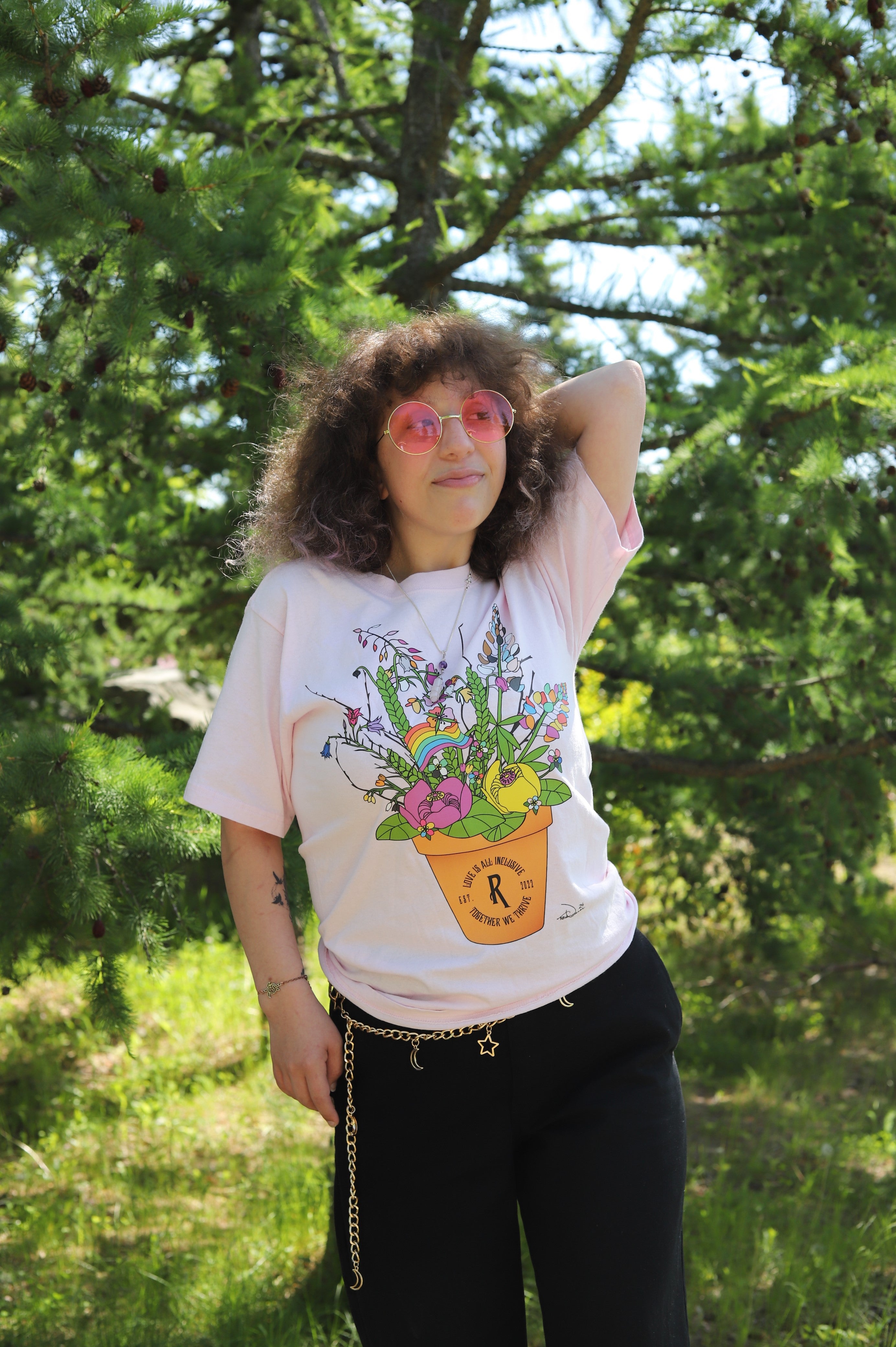 created by a client for her final project at REDEMPTION, this limited-edition design features Alaskan flowers in radiate pride flag colors! -Because love is all inclusive and together, we thrive!